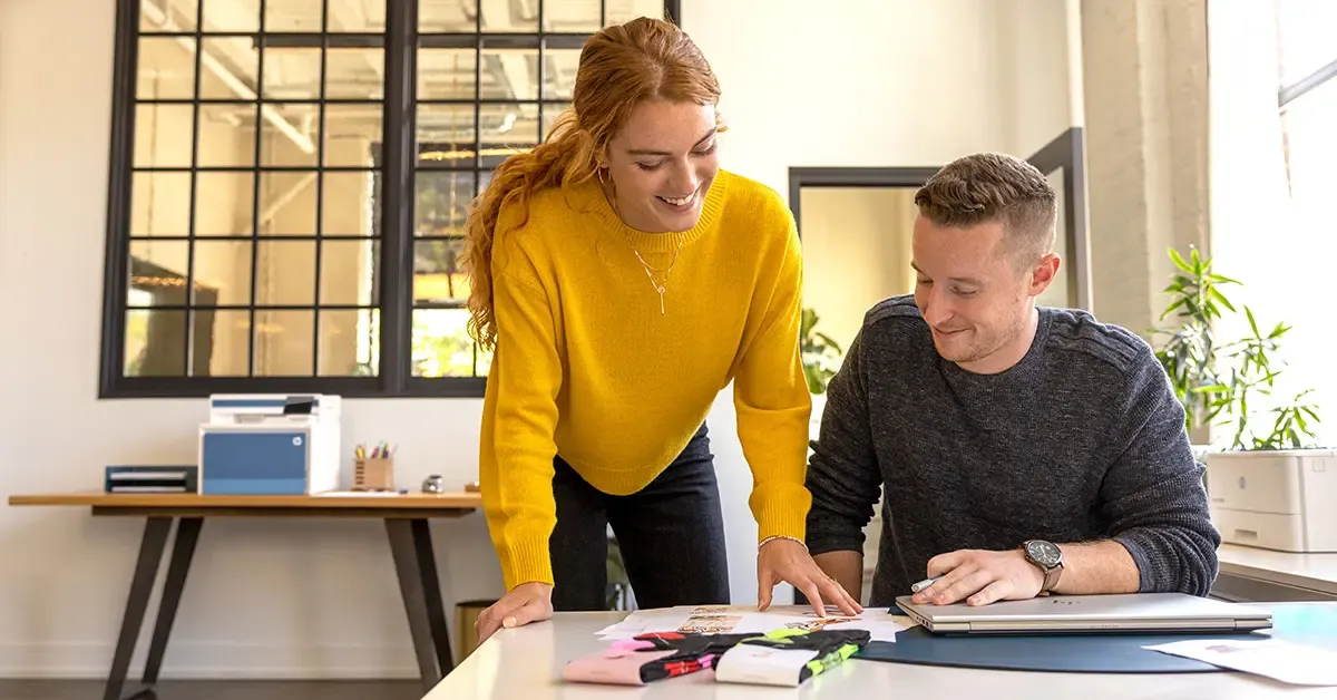 I dag arbejder du og dine medarbejdere overalt – på kontoret, derhjemme og på farten. Se her, hvordan du guider og motiverer dit team i et hybrid arbejdsmiljø.